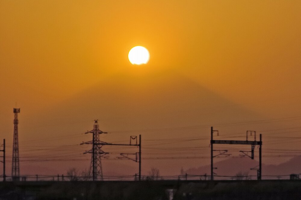 黄砂や花粉のため、かなり霞んでいました。 17:35