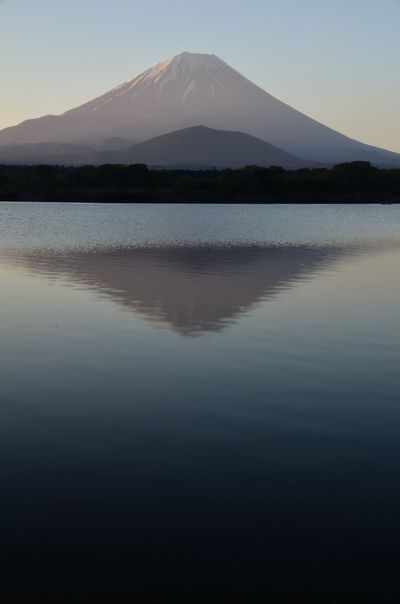 精進湖他手合浜駐車場から富士山を見たら雲が切れて顔を出してくれました。