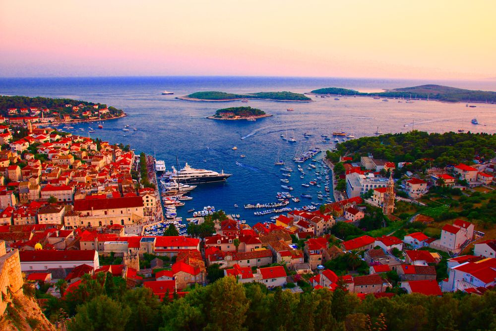 アドリア海に浮かぶフヴァル島(クロアチア)の港を見渡す景色。夕陽が沈むのを見ようと城壁に登り港を見下ろした時の絶景です。この島はハリウッドスターもお忍びでクルーザーを寄港させるリゾート地。夏のバカンスにはお薦めですよ。 #funtotrip #絶景