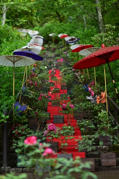 長谷寺は大和国と伊勢国を結ぶ初瀬街道を見下ろす初瀬山の中腹、今の奈良県桜井市初瀬にある真言宗豊山派の総本山の寺院。本尊は木造十一面観音立像。初瀬山は牡丹の名所といわれ、4月下旬から5月上旬は150種類以上、7000株といわれる牡丹が満開になり、古くから「花の御寺」「 長谷の牡丹 」「 牡丹の長谷寺 」と称されています。また「枕草子」「源氏物語」「更級日記」など多くの古典文学にも登場し、中でも「源氏物語」にある玉鬘の巻のエピソード中に登場する「二本(ふたもと)の杉」は現在も境内に残っています。