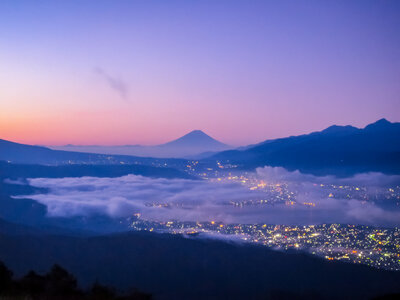 雲のベール越しの宝石箱と富士山