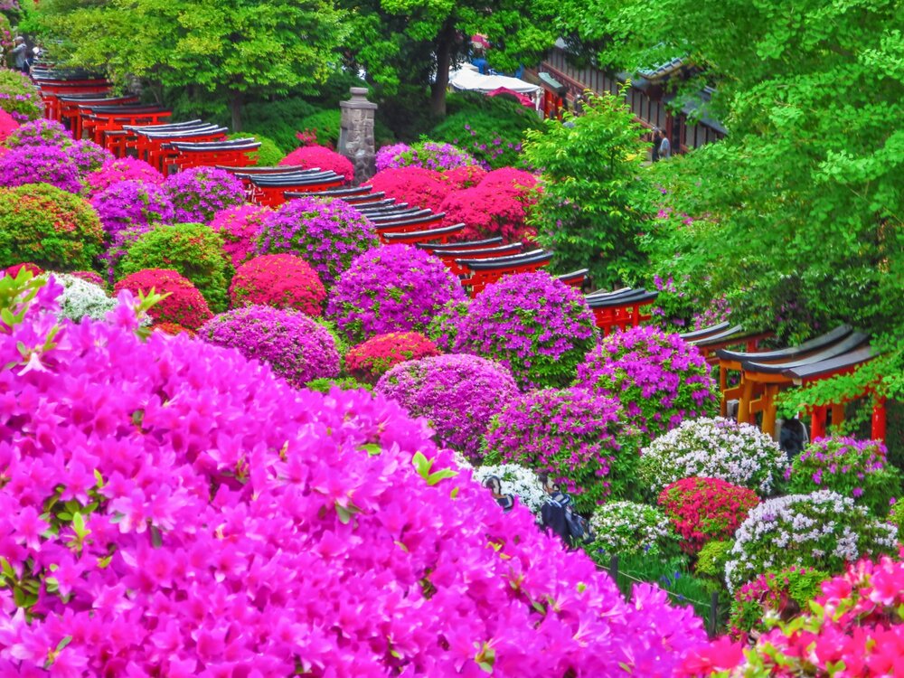 色とりどりのツツジと千本鳥居