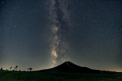 富士山と天の川と流星を一緒に収めるため、光害の有無、時間と方角等の条件から山梨県富士吉田市にある陸上自衛隊の北富士演習場(梨ヶ原)で撮影しました。