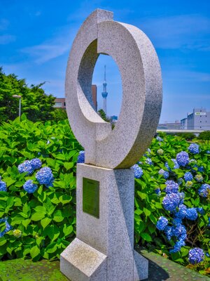 スカイツリーとあじさい
