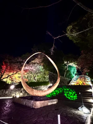 歴史と文化遺産に彩られた京都東山三十六峰の一つ、華頂山の麓に広がる浄土宗総本山知恩院。 ここに居を構えた法然上人が初めて念仏の教えを説き、その尊い生涯を閉じた念仏の聖地です。73000坪の広大な境内は上中下3段に画され、国宝や重要文化財の多くの伽藍が建ち並んでいます。上段には法然上人の御廟を中心に勢至堂や濡髪神社、中段には3000人が一度にお参り出来る御影堂をはじめ、多数の大建築と諸設備、下段には壮大な三門の他、宿坊としての和順会館や学校施設などがあります。 現在、大阪・関西万博のアイルランド館で展示された大型モニュメント「Magnus RINN(マグナス・リン)」が浄土宗総本山・知恩院で展示されています。 アイルランド出身の作家ジョセフ・ウォルシュ氏が知恩院の佇まいと建築に感銘し、「ここで展示したい」と希望。アイルランド政府との調整を経て、展示が決まった三門と石段の間に移されました。テーマは「人と自然の循環」「アイルランドと日本の文化的対話」。「RINN」はアイルランド語で「場所・地点」を意味し、日本語の「輪」にも通じるそう。ライトアップ開催期間中は、夜間特別拝観や僧侶の法話『和から輪へ』~信じる心を紡いで~と木魚念仏体験を実施中。