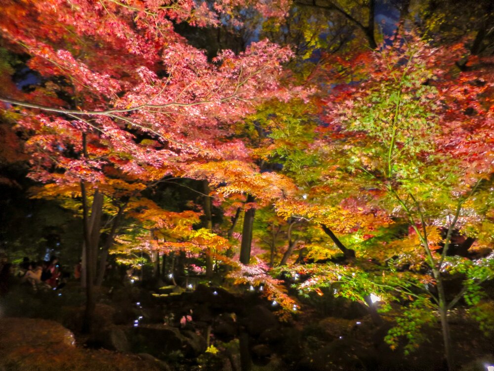 ライトアップされたモミジの紅葉