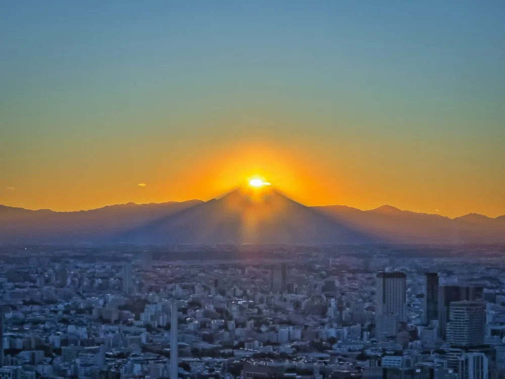 木枯らし1号が吹き空気も乾燥し、強烈な太陽光のダイヤモンド富士になりました。 16:33