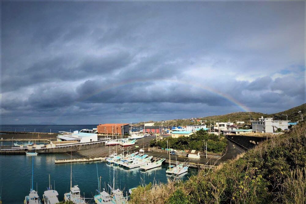 12月だというのに、三宅島は風がないと暖かい。 昨日はかなり大荒れだった海もだいぶ凪ぎて 朝は小雨に日が差して大きな虹が出ていた。