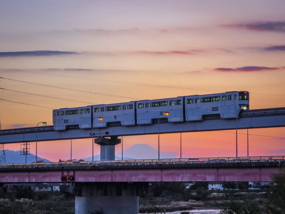 多摩モノレールと夕富士