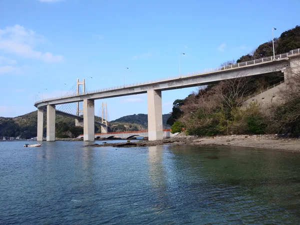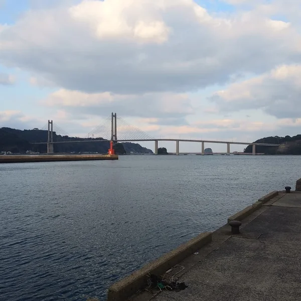 名護屋大橋の上から見た呼子大橋と名護屋湾。 遠くに呼子大橋が見える。 名護屋大橋歩道上から呼子大橋方面を眺めて名護屋湾を撮影しました。 写真は、遠景の呼子大橋です。