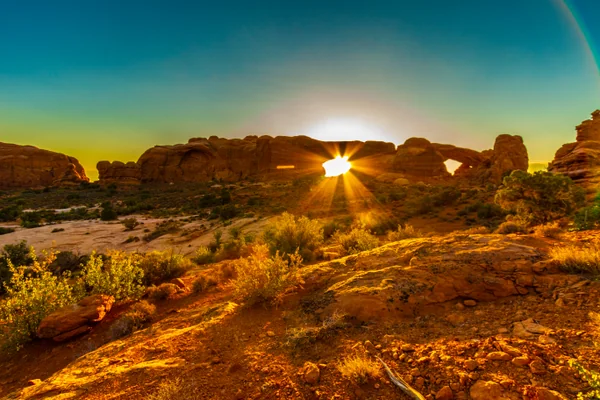 アメリカ・ユタ州にあるアーチーズ国立公園(Arches National Park)。この公園内には雨風で浸食された岩がアーチ状になって残っているところがたくさん。その中でも有名な岩の一つがこの場所North Window。この撮影している場所はまさに穴の空いた場所から北側を撮影したもの。ちょうど朝日が昇ってきたタイミングで眺めも良く、また風通しも良く気持ちよかったです。