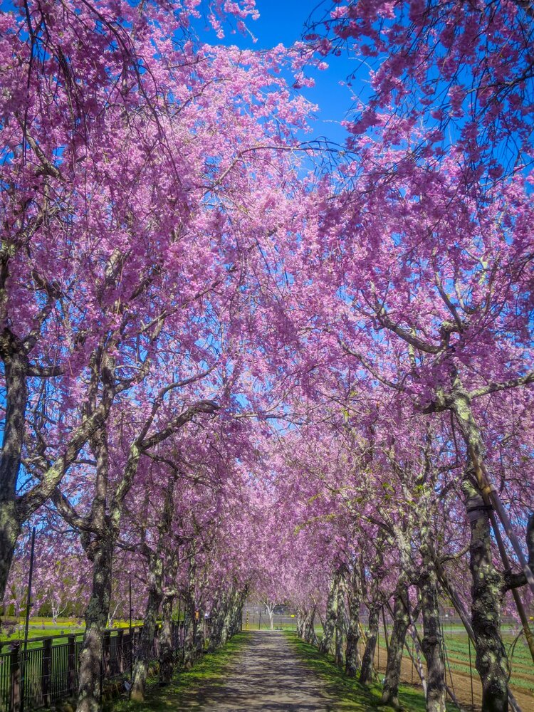 八重紅枝垂桜が見頃とHPに掲載されたので、天気の良い日を選んで訪れました。