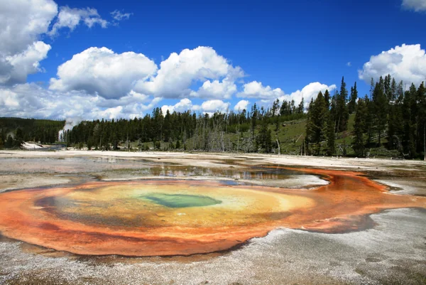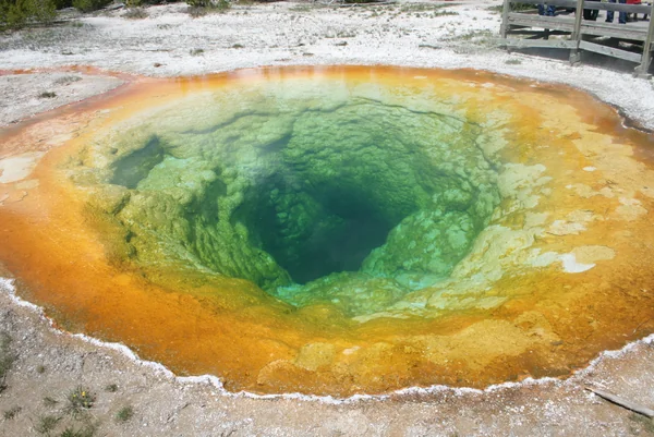 間欠泉で有名な、イエローストーン国立公園 Yellow stone national park 美し過ぎる自然美。鮮やかな虹色に染まる温泉。 このカラフルな色は、温度によって色が変わる好熱性のバクテリアたちによるものらしい。 本当に自然はアートだ。