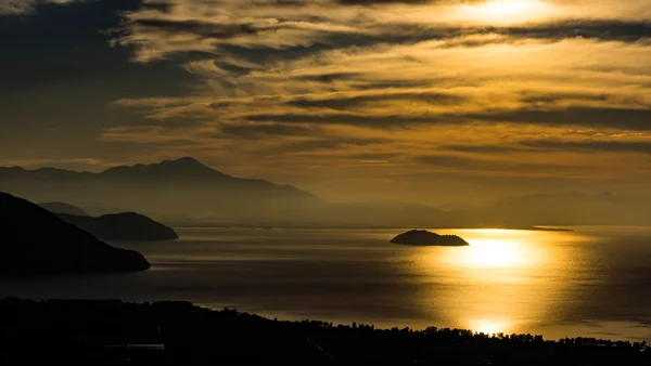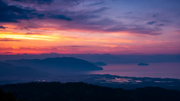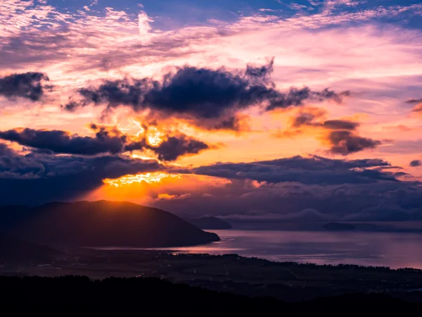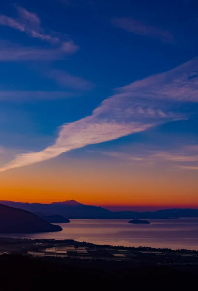 「家族旅行村ビラデスト今津」の入口前ビューポイントにて、日の出から約2時間経過頃の奥琵琶湖の眺望です。 琵琶湖最奥部付近に発生していた霧状の雲は、次第に伊吹山の中腹を隠しながら南北に伸び、やがて竹生島上空を越えて鈴鹿山地を隠すまでに発展、そして霊峰伊吹の山頂のみが雲上に突き出して、見事な雲海となりました。 「♬あたまを雲の上に出し・・・」と思わず歌い出したくなる絶景ですが、これは富士山ではありません。