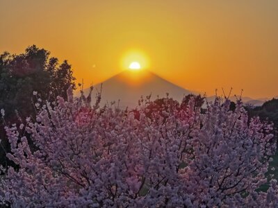 17:24 山頂付近に小さな雲が残りましたが、4ヶ月ぶりにダイヤモンド富士ゲットできました。周辺の雲も光り輝きました。