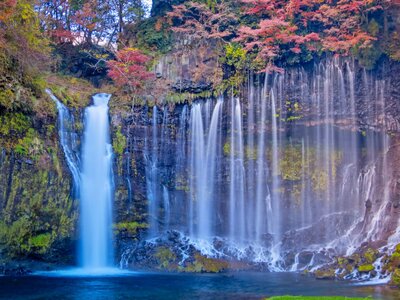 富士山の湧水の白糸の滝。 太陽のあたたかさを感じた瞬間、虹がかかりました。 ほんの数分の出来事。