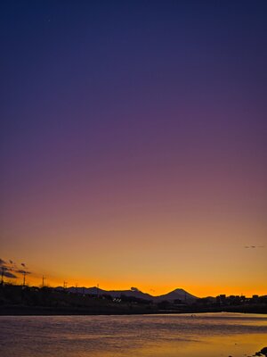 夕富士と夕焼けグラデーションと金星
