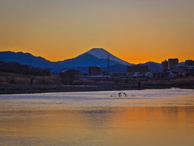 夕富士と微かに逆さ富士
