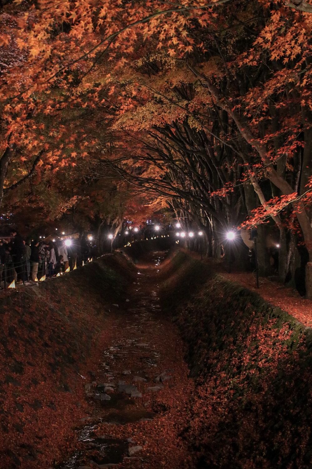 河口湖畔のもみじ回廊 幻想的な紅葉のトンネルです
