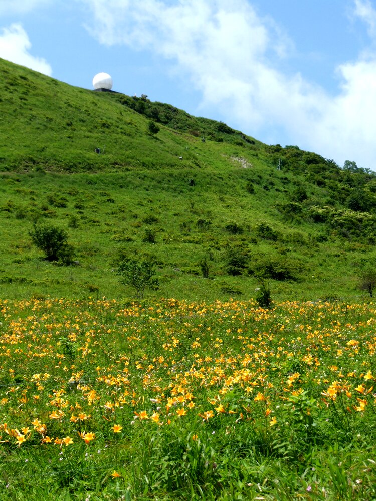 霧ケ峰の盛夏(ニッコウキスゲの乱舞と気象レーダー)
