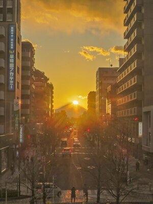 雲の多い空でしたが、富士山と雲の間に夕日半分の隙間があり、まずまずのダイヤモンド富士になりました。
