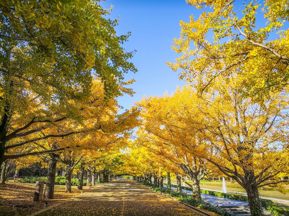 カナールのイチョウ並木が見頃になったとのことで、朝一番乗りしました。