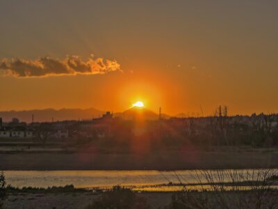 富士山頂は雪煙が上がっていましたが、まずまずのダイヤモンド富士になりました。 16:49