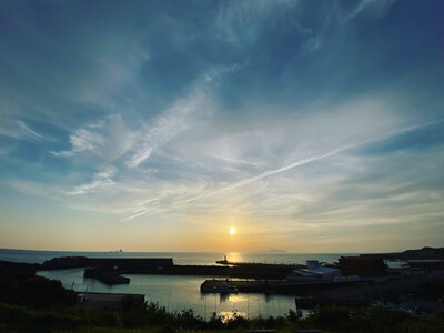 三日月と港の夜景
