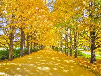 前夜の風雨で程よく落葉し、黄金の絨毯になりました。