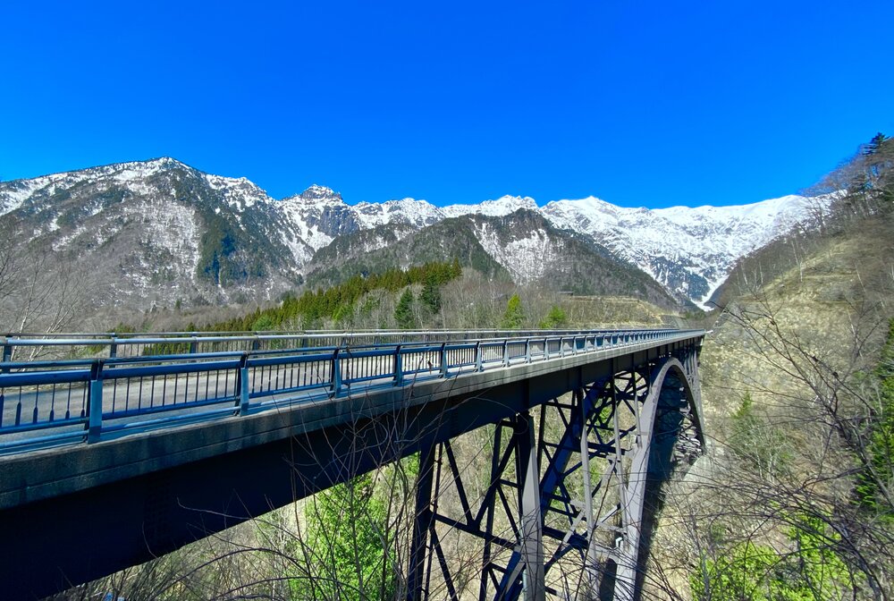 全長150m、高さ70mの北アルプス大橋は、新穂高温泉中尾高原と鍋平園地を結ぶ絶景スポット。 北アルプスの錫杖岳、笠ヶ岳、抜戸岳などの雄大な景色に吸い込まれそうになります。 錫杖岳や笠ヶ岳などの北アルプスの雄大な風景は迫力満点です。 ドライブルートとしても人気で、車で走り抜ける爽快感は最高です!! 鍋平園地には木道で整備された遊歩道があり、白樺やミズナラの林に囲まれた自然豊かな散策コースも人気のスポットです。 5月下旬頃には新緑、10月中旬頃には紅葉が楽しめます。