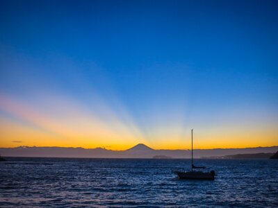 この夏初めての三浦半島からのダイヤモンド富士です。ここからは江の島の左上に富士山が望めます。強烈な太陽光のダイヤモンド富士になりました。