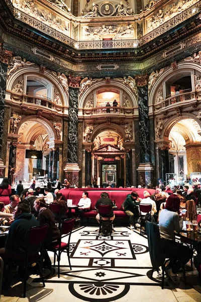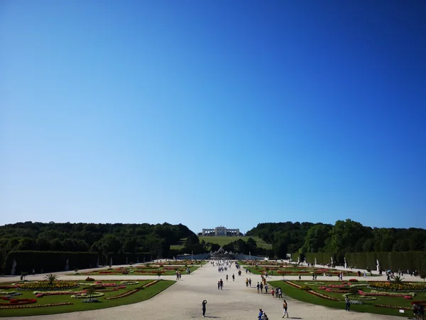 シェーンブルン宮殿の建物から徒歩20分ほどのグロリエッテからとった写真。 宮殿外の道まで庭の中通りと繋がるまっすぐさ。 建物の黄色は、ガイドブックによると、シェーンブルンイエローorマリアテレージュイエローというそうです。 どちらが正しいのかは結局わかりませんでした。 宮殿の中に入るにはチケットが必要。 めっちゃ混むので、朝イチか、人がすく15~16時に向かうのがよさそうです。 10時くらいにチケットカウンターに並びましたが、購入できるのは15:30入場のチケットでした。断念。