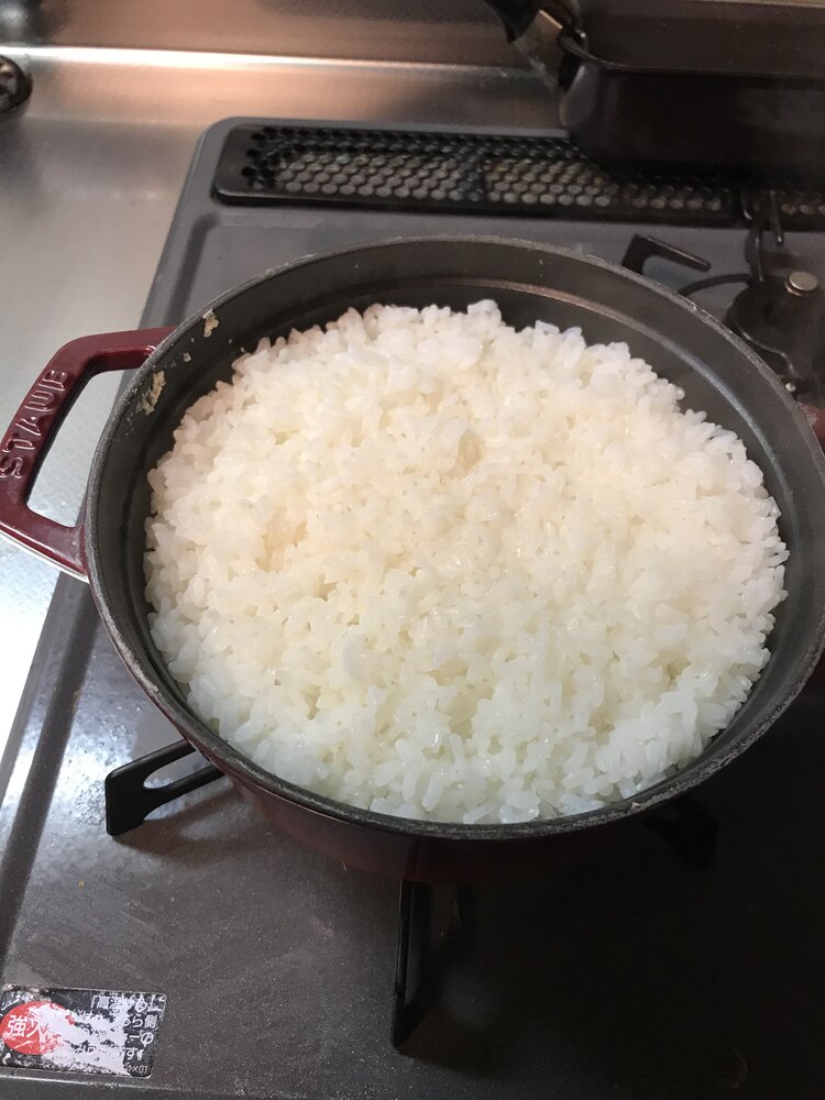 ちょっと前、飯ごうで焚き火を利用し、米を炊く経験をしました。火の大きさは調整出来るはずもなく火の勢いが強い場所で吹きこぼれるまで、炊きました。その後10分程度蒸らし、あーら不思議。甘いご飯ができあがりました。これ、家でも出来るんじゃないかな?と思いつき、炊いてみました。ストウブの機密性が高い鉄鍋を使用。5分強火、水蒸気が蓋から出てきたら、弱火で10分程度、10分蒸らしで20分程度で出来上がります。炊飯器で炊くより短時間で炊くことができ、ガスも少なくて済む。こんな簡単にできるんだ〜感激。