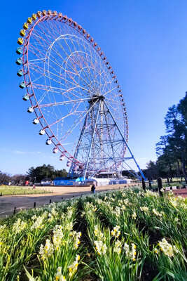 中秋の名月翌日の十六夜月を葛西臨海公園の大観覧車とコラボさせてみました。