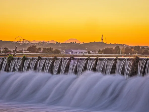 30分ほど前に現地に着いたときは富士山は見えていましたが、右から雲が流れてきて富士山を隠してしまいました。夕日が富士山にかかり始めると夕日の欠け方で山頂が確認できました。 16:24