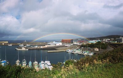 港にかかる虹