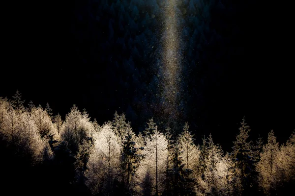 朝陽に染まる霧氷林