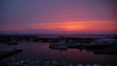 三本岳の横にピンクの灯り、 厚い雲に覆われた太陽が沈んでいく瞬間 ブルーとピンクの幻想的な色が現れた。