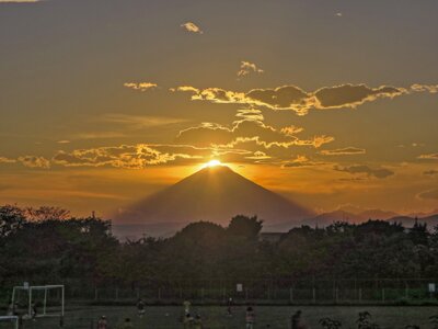 かなり霞んでいましたが、微かに富士山は見えていました。今日も花粉光環付きダイヤモンド富士になりました。 17:34