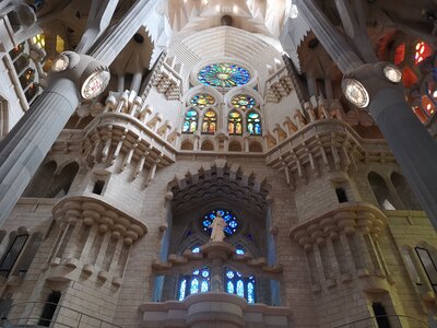 スペインにあるサグラダファミリアの内部。 天井も実に凝った作りをしている。