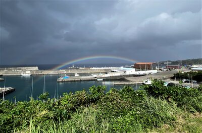 少し暑いくらいの日曜日、西のてっぱつは少し弱まったものの 水平線のカスミは取れずにあまりクリアな空ではなかった。 夕陽はきれいに三本岳の真上を通過して沈んでいった。