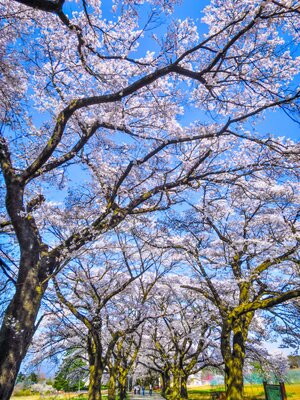 圧巻の桜並木です。桜並木の外側から撮りました。