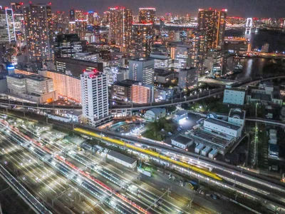 レインボーブリッジと回送線を東京駅に向かうドクターイエロー