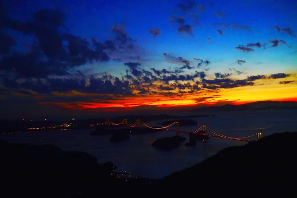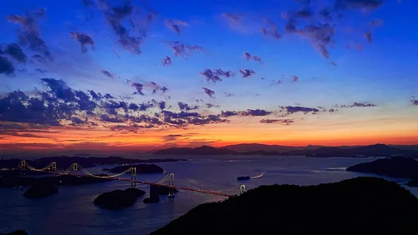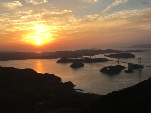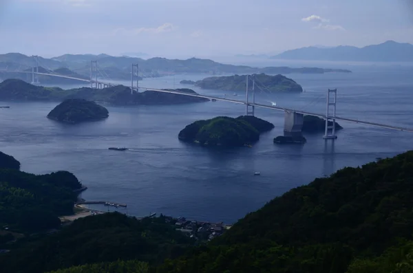 亀老山展望台 標高307.8mの亀老山展望公園は、四国から来島海峡を渡った先、大島の南端に位置し、瀬戸内海国立公園に指定されています。隈研吾氏による設計のパノラマ展望台ブリッジからは、世界初三連吊橋「来島海峡大橋」と日本三大急潮のひとつ「来島海峡」の潮流、晴れた日には西日本最高峰「石鎚山」を眺める事ができます。