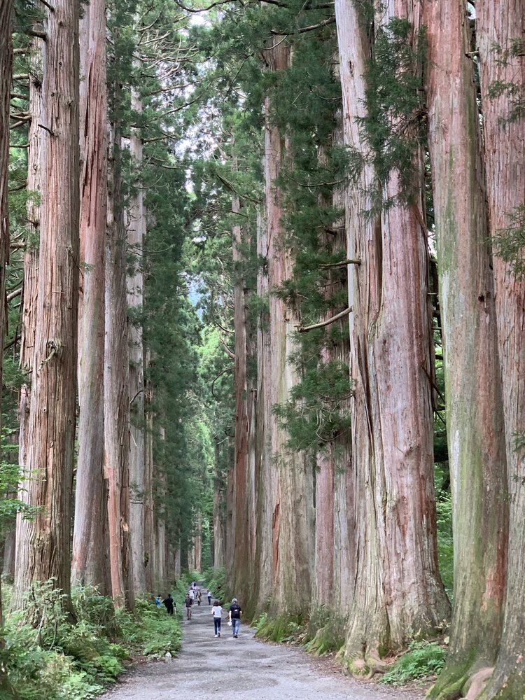 戸隠神社奥社の杜は、随神門から約500メートルにわたって200本以上のスギの巨樹が続く杉並木がその象徴として広く知られます。スギの他、ハルニレ、シナノキ、ブナ、トチ、オオヤマザクラ、ハンノキ、ミズナラなどの落葉樹、モミ、イチイ、ウラジロなど針葉樹からなる154,000坪に及ぶ広大な自然林です。