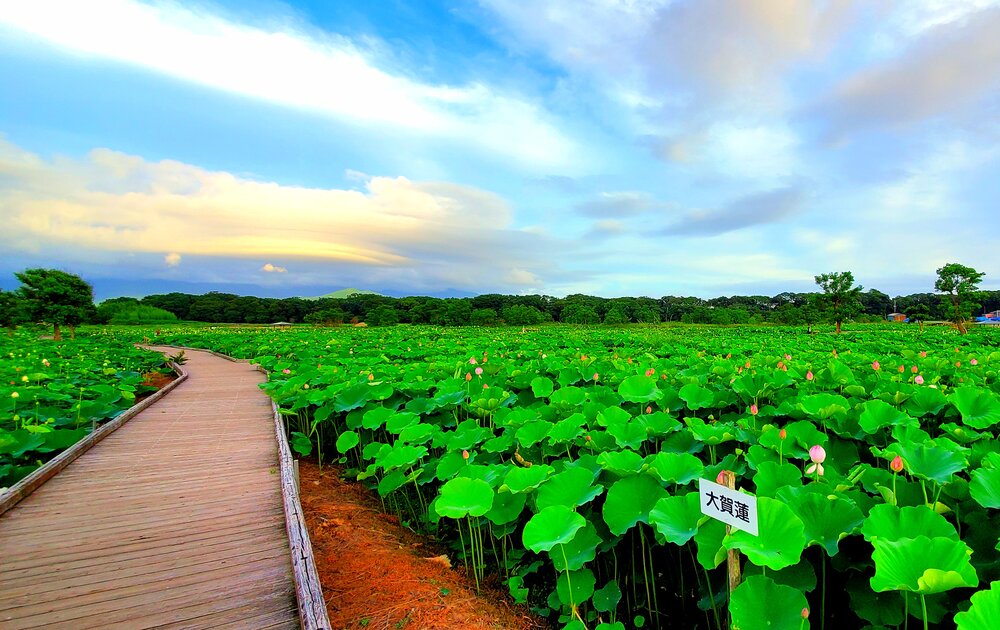 遊歩道と蓮畑