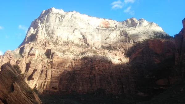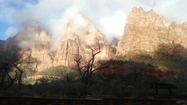 アメリカのグランドサークル内にあるザイオン国立公園。キャンすぐ裏手にあるブリッジ山の夕焼けです。https://www.travel.co.jp/guide/article/36075/