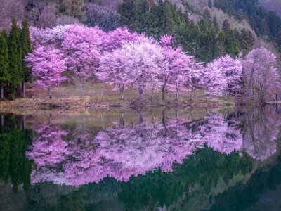 早朝撮影。気温が低く、湖面から朝霧(毛嵐)が立ち昇ってました。春の桜が有名ですが、紅葉もまずまずです。