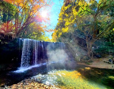 早朝の鍋ヶ滝 光房が素敵な時間でした。 この素敵な滝に巡り会えた写真家さんたちを後ろから撮らせて頂きました 撮影地:鍋ヶ滝(熊本県阿蘇郡小国町黒渕)