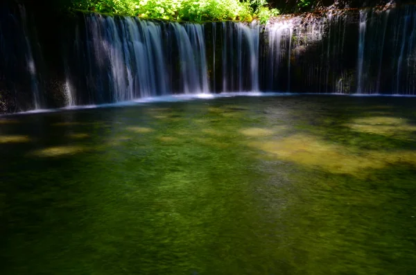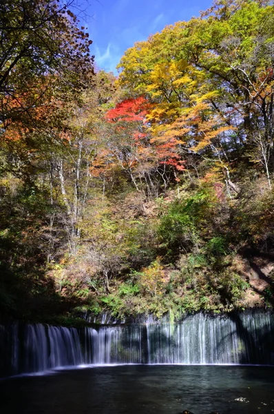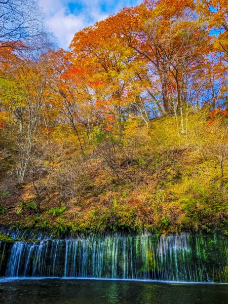 軽井沢の観光名所・上信越高原国立公園にある「白糸の滝」。高さ約3m、幅約70mの白糸の滝をスクリーンとして、赤や青などのライトで照らされ幻想的な世界が広がる。澄んだ空気の中での自然とイルミネーションが調和する空間に飛び込んでみませんか。
